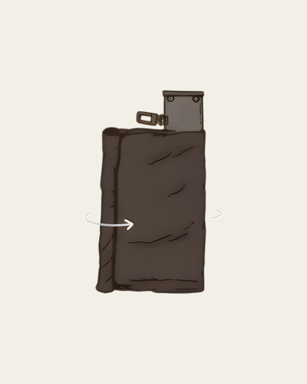 Starting at the bottom, tightly roll the fabric toward the top. A tighter roll ensures it fits perfectly into the keychain compartment.