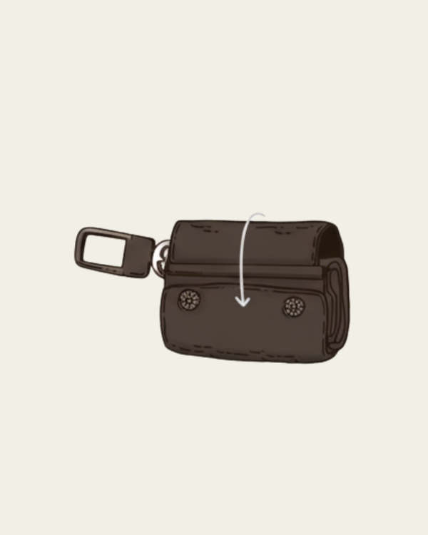 Close the snap buttons securely to keep everything compact. Clip the keychain to your bag, keys, or belt loop — ready for your next errand.
