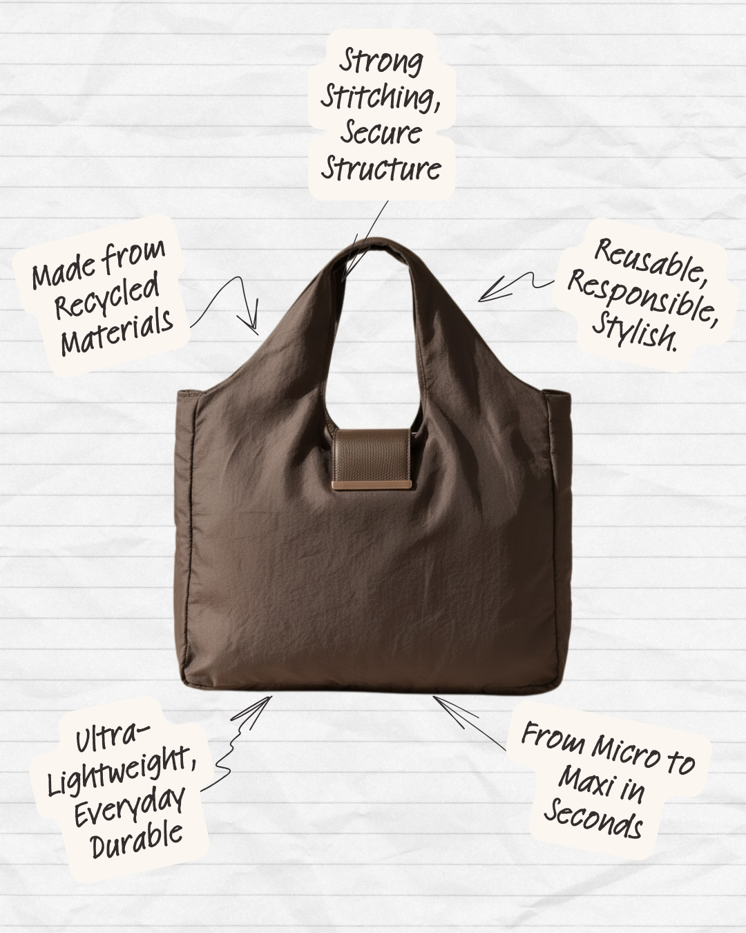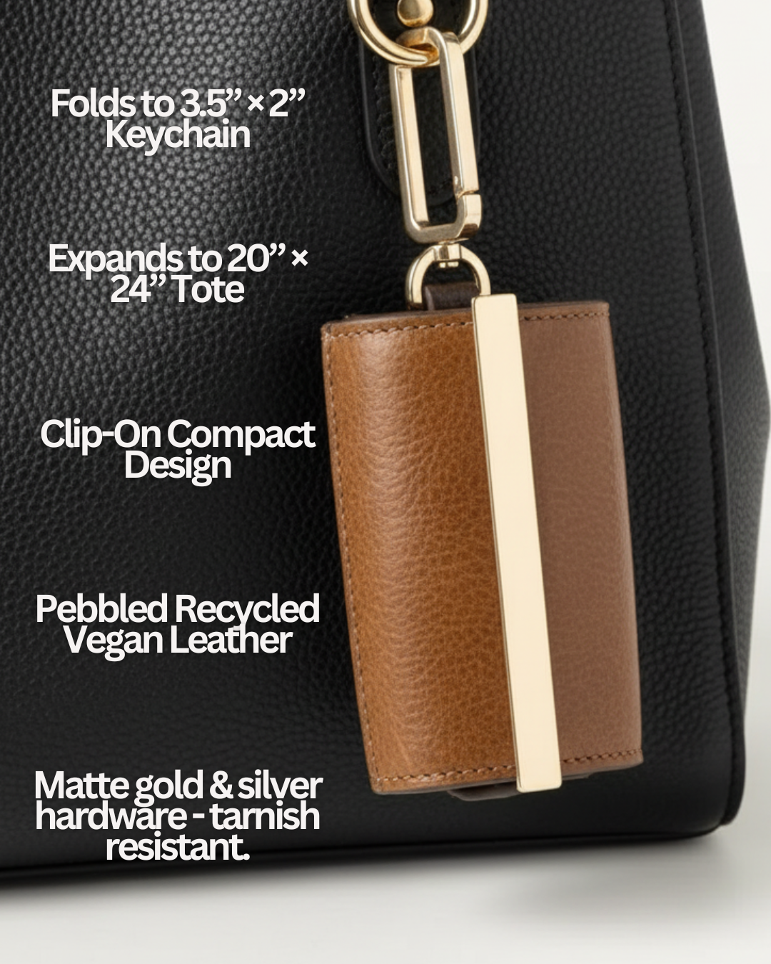 "“I use my Charmi for travel, errands, and work — and it has saved me so many times. It’s lightweight, sturdy, and holds more than I expected, yet folds back into the little keychain pouch in seconds. Truly such a smart design and absolutely worth it.”"
