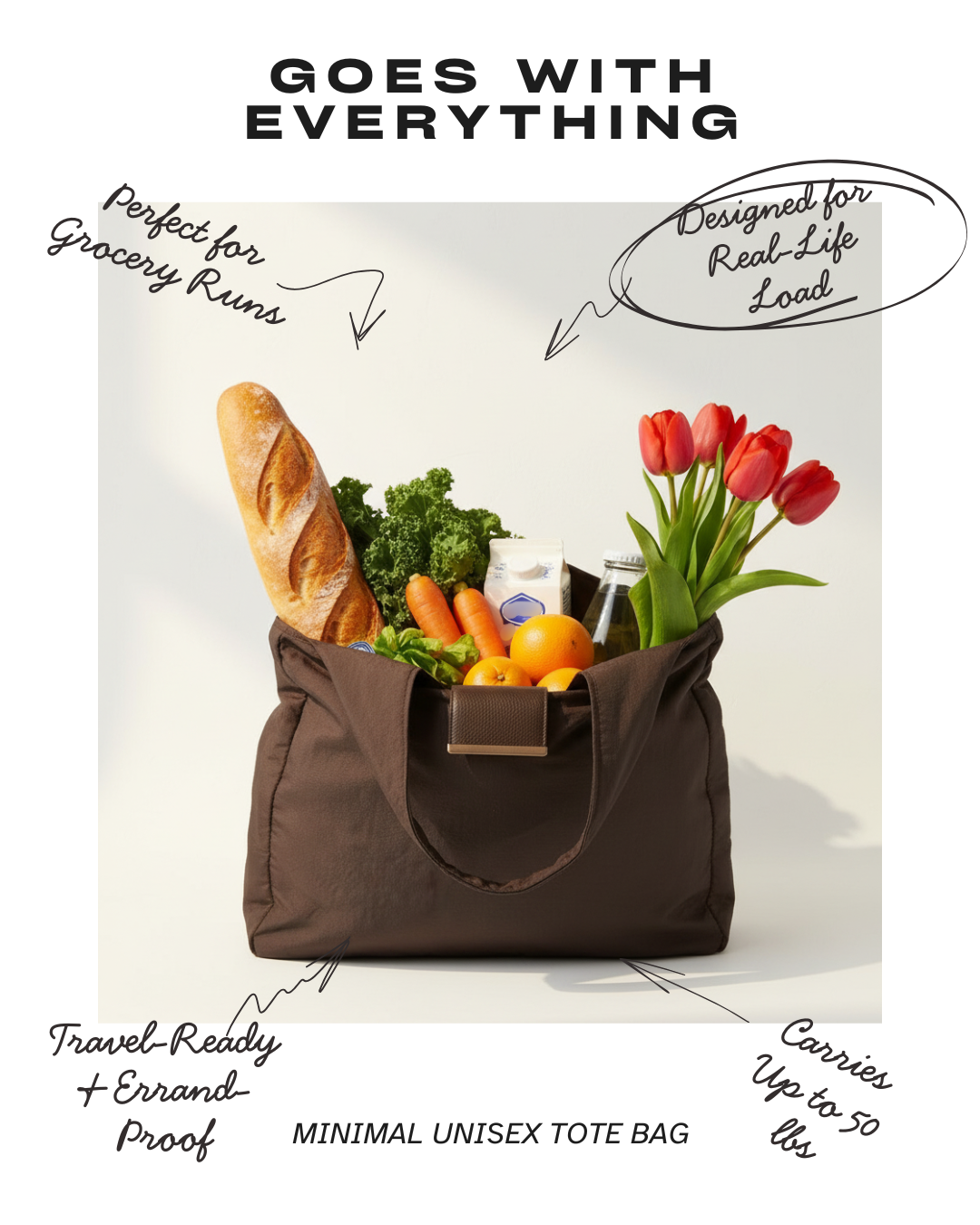 "“This tote is a game-changer for grocery runs. I used my Charmi immediately and was shocked by how much it carried — even heavy jars and produce — without losing shape. It’s durable, lightweight, and now my go-to bag for every errand.”"